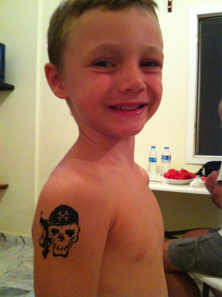 Gelgelelim düya tatlısı Luca’nın Levent abisini örnek aldıgı yolun başlangıcına. Resimlerde de gördüğünüz yer seçmi oldukça başarılı 2 motif,Luca’nın yazlık dövmeleri. Kendisi sırtındaki geçici dövme silinir belki diye gün boyu arkasına bile yaslanmadan oturmuş. Annesi ise daha önceden yasadıgı bu senaryodan dolayı bir dejavu yasamayacak kadar tecrübeli. Bana düşen görev ise Luca 15 yaşına geldiğinde kendisine en güzelinden gerçek bir dövme yaptırmak. İlk dövmesi benden hediye.