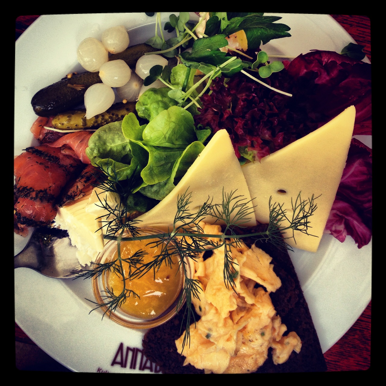 Zengi Kahvaltı kültürümüzün yanına hiç bir şekilde yaklaşamayan Avrupe ülkelerinde uzun uzadıya kahvaltı edecek mekan genellikle bulamam ama bu duruma oldukça yaklaşan ve herkesin tavsiye listesine yer alan Anna Blume’a ben de gittim ve oldukça memnun kaldım. Benim gibi tek değilde bir arkadaşınızla beraberseniz Anna Blume Special Breakfast mutlaka deneyin, ben yan masalardan gördüğüm kadarıyla söylüyorum. Oldukça göz doyurucu.
