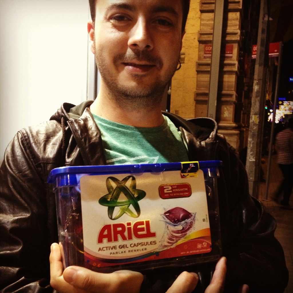 Bundan bir ay kadar once Oyku bana “evde Ariel Aktif Jey Kapsulleri var, bende makina yok onlari sana vereyim” demisti. Benimde tam deterjanim bitiyordu ve bu teklif bana dunyanin en cazip teklifi, Ariel Aktif Jel Kapsulleri de dunyanin en degerli deterjani gibi gozuktu.