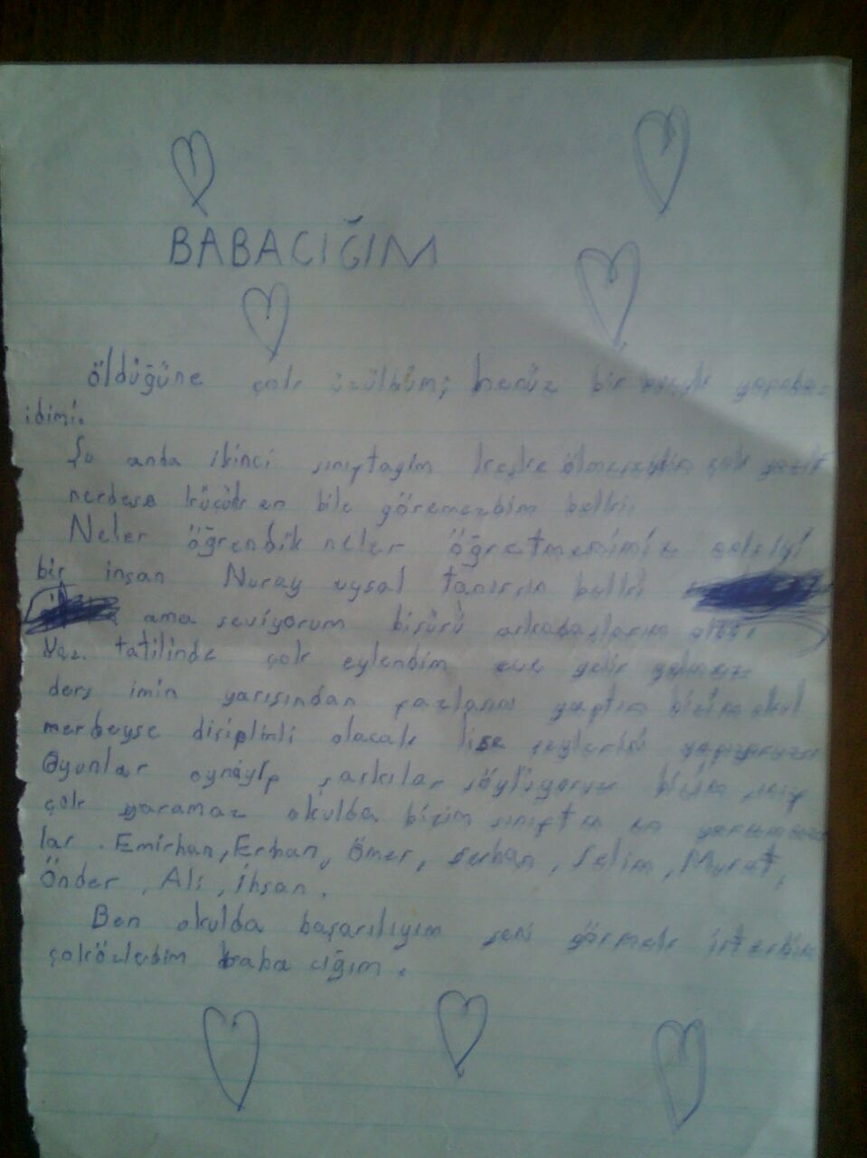 Ben okulda başarılıyım, seni görmek isterdim, çok özlediğim babacığım.